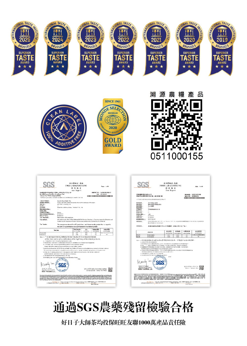 · 國際品質評鑑組織金牌獎